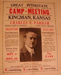 In 1900, Charles Parham, an instructor at a Bethel Bible College in Topeka, Kansas, was teaching that true baptism was followed by the endowment of a “gift”. He explained to his students that this gift could take the form of dreams, visions, prophecy, faith healing and speaking in tongues just as the Apostles did. He also said that while gifts were given to the Apostles, they were also still available today to “those of great faith”. He told his student to spend the coming Christmas break meditating about their own gift. On January 1, 1901, one of his students by the name of Agnes Oznam began speaking in an unknown language in class. This language would become known as Glossolalia which means to speak in angelic tongues (I Corinthians 12:10; 14:2-5). This event was quickly followed by more and more students suddenly speaking in tongues or unknown languages. Parham concluded that this was an end time prophecy event. Then, in 1903 Parham suddenly turned from teaching and instead began a faith healing ministry that quickly became very popular.