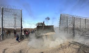 Israel currently has a buffer zone around its borders. It confiscated these lands as the spoils of war when it defeated unwarranted attacks by Syria, Jordan and Egypt. Therefore, Israel can wait and access what actions to take depending in the size of the attacking infantry. This means that while tanks, missile launchers and personnel trucks will all be destroyed in the buffer zone, Israel can wait to see if the foot soldiers and “other people” decide to retreat, or continue to press forward and actually cross Israel's border.