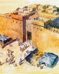 Because of Lot's wealth and influence, he was now apparently a Town Council member and as such allowed to sit in the shade of Sodom’s massive main gate (Genesis 13:2, 5). This 23’ wide excavated gate was the only entrance into the city and passed through a massive 23’ thick defensive wall composed of interlacing baked brick lined on both sides with block stone. The wall was 33’ high with 2 large stone guard towers flanking the gate. Inside the gate opening were 2 long stone seating benches that ran from the entrance of the gate to the exit into the city. It was on these shaded benches and with a manmade breeze, that the elders of the city would sit facing each other and converse on a variety of legal and social issues. It was also here that they would welcome known citizens and merchants while interrogating strangers as the city’s armed guards looked on.